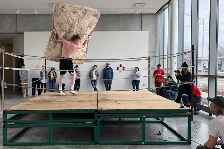 Noah Grammer, "Mattress Fight," 2021. Performance. Noah Grammer