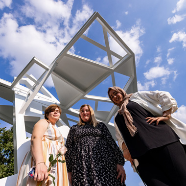 - "The Skylight," a new sculpture created by three Herron graduate students, Leena Dobouni (M.F.A. Visual Art '21), Anastasya Halsema, and Karri Leamon (M.F.A. Visual Art '21), was unveiled in the Magnolia Courtyard on Aug. 27. The Christel DeHaan Family Foundation funded the public art sculpture, which honors Christel's contributions to the IUPUI campus.